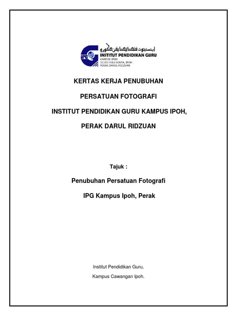 Kertas Kerja Penubuhan Persatuan Fotografi Pdf