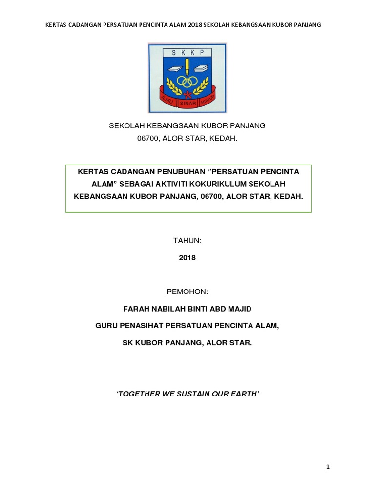 Persetujuan daripada pihak tuan untuk merealisasikan pelaksanaan penubuhan. Baca versi flipbook dari kertas kerja penubuhan persatuan bahasa melayu. Tujuan kertas kerja ini disediakan adalah untuk memohon pertimbangan dan.